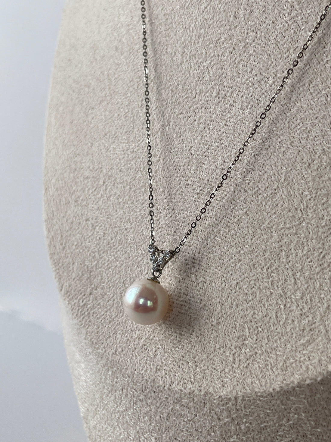 Saltwater Pearl Pendant | 9–10mm · Round · White with Pink Overtone · High Luster · V-Shaped Zircon Bail (S925 Chain Included)