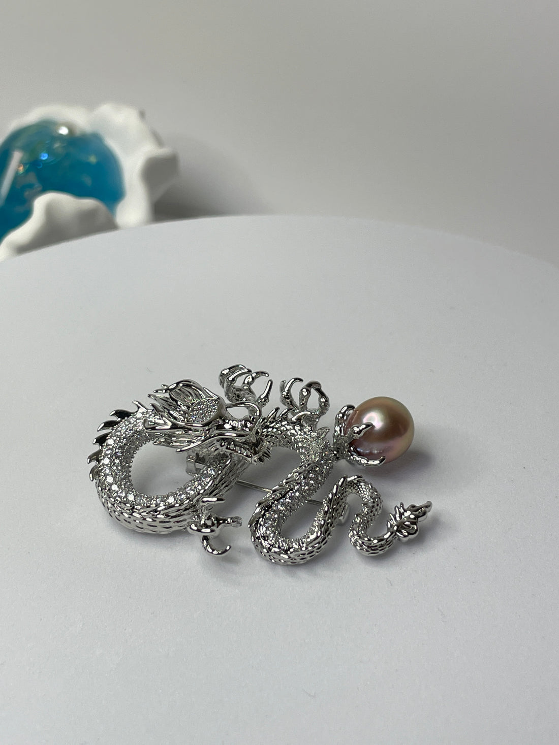 Dragon & Freshwater Pearl Brooch | 10–11mm Pink Drop Pearl · Zircon Accents · Anti-Fading Alloy