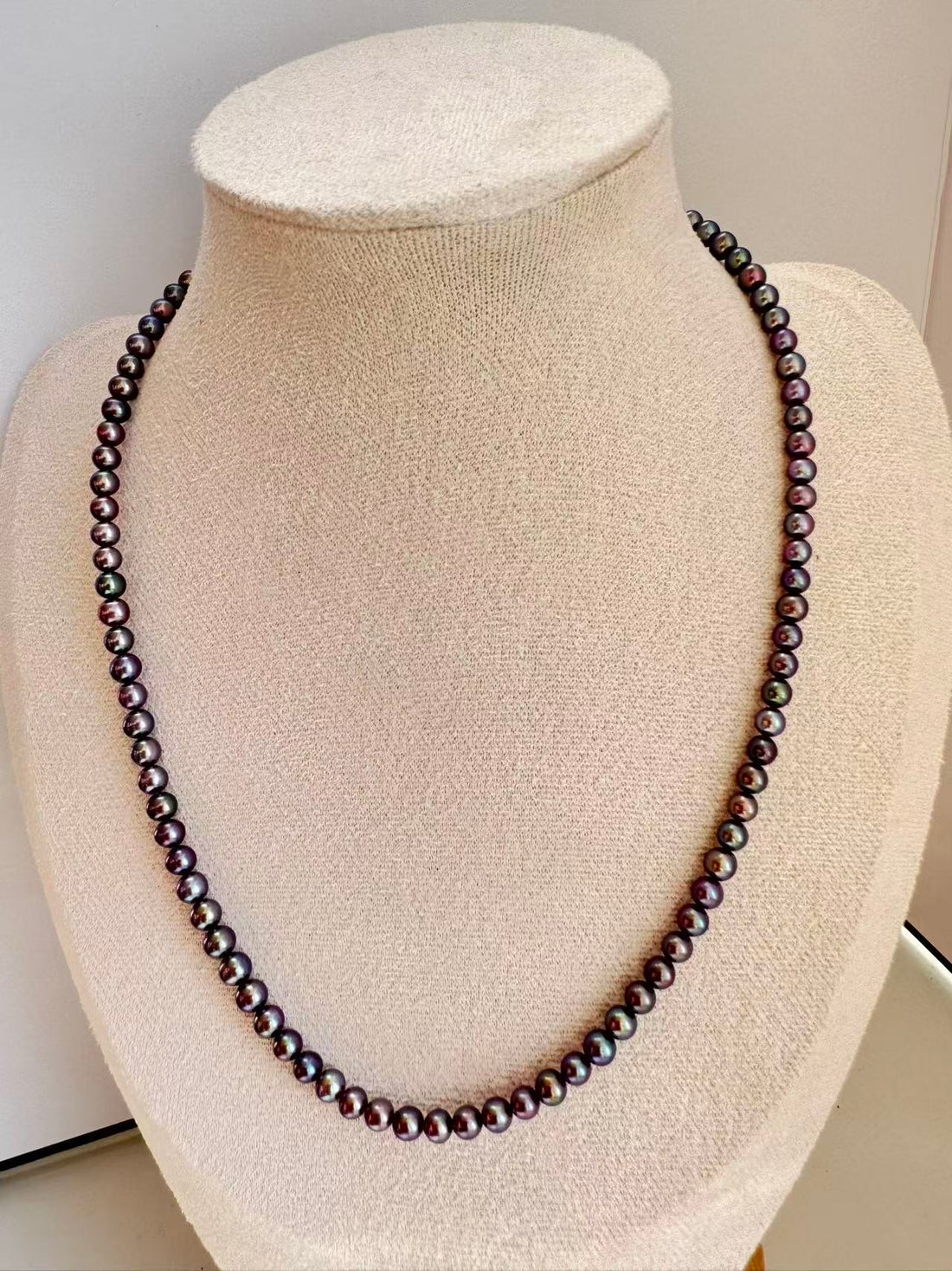 Freshwater Pearl Necklace | 4–5mm · Near-Round · Natural Purple · Iridescent High Luster · S925 Sterling Silver Long Chain · 45cm