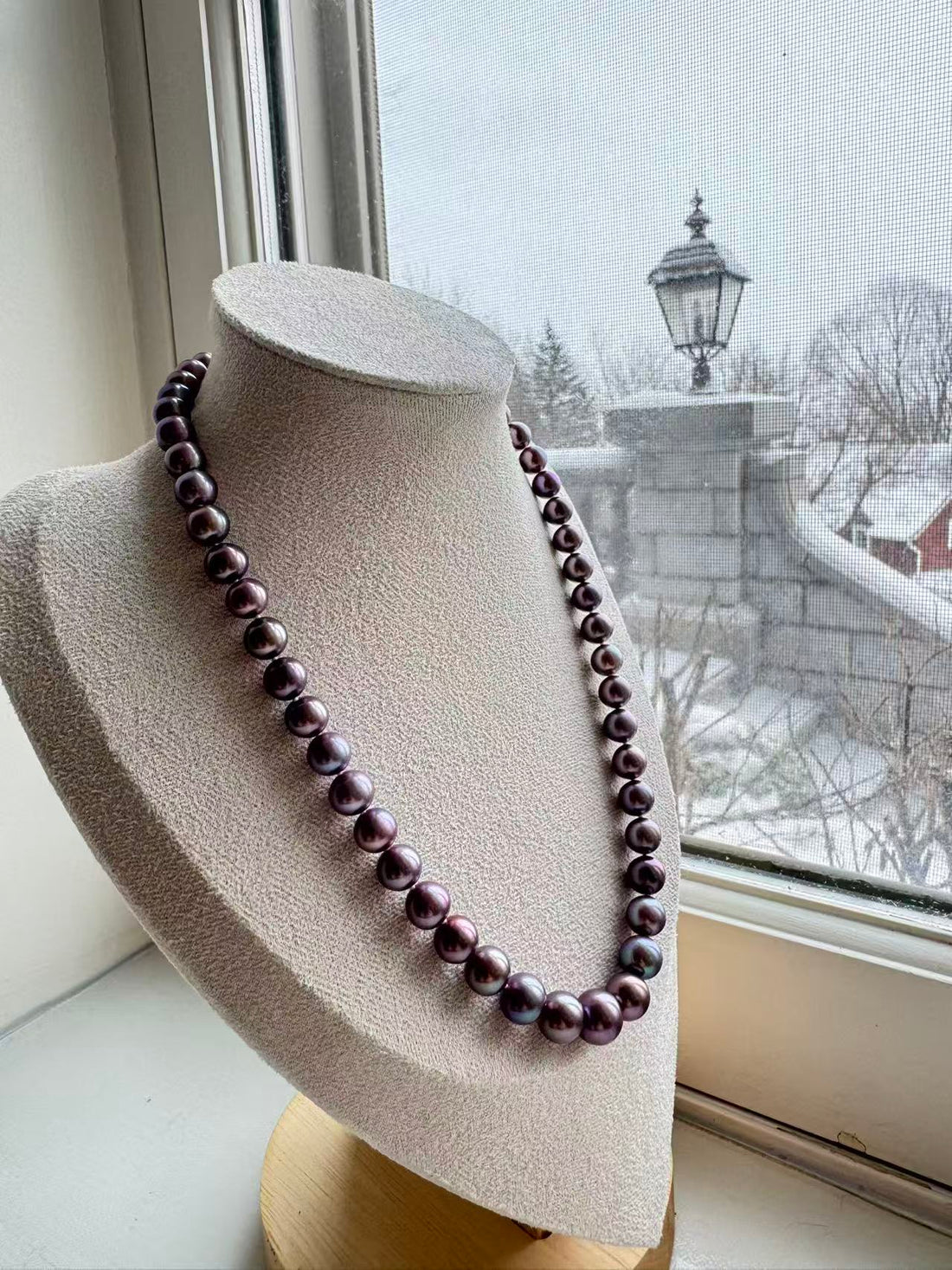Freshwater Pearl Necklace | 8–9mm · Rare Iridescent Purple · Near-Perfect Round · Silver Clasp with Extension · 45cm Length