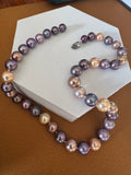 This luxurious candy-style necklace features 40 natural freshwater pearls in rare, naturally occurring multicolor tones. Graduating from 7–8mm to 11–12mm, each pearl is perfectly round, carefully selected for its exquisitely smooth surface and exceptional, high-intensity luster. Every pearl radiates vivid iridescent color play, creating a vibrant yet refined visual harmony.