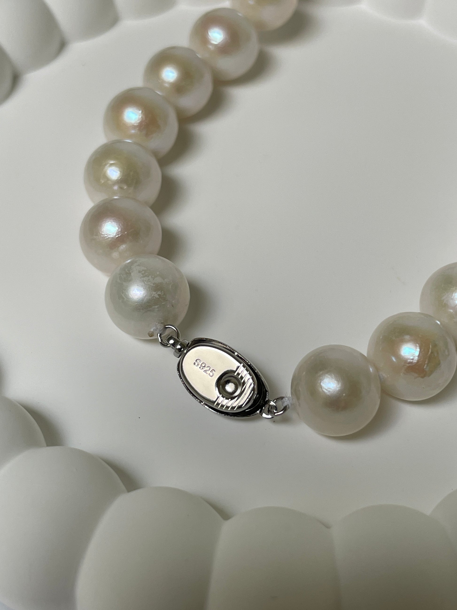 The subtle golden hue is often referred to as the “gold-bearing glow,” symbolizing prosperity and good fortune. Combined with the generous pearl size, the necklace delivers a bold, elegant presence that enhances both modern and traditional styles.