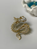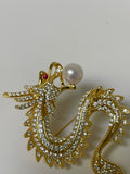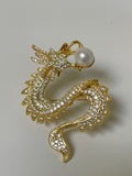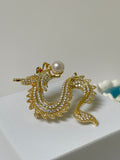 Golden Dragon Pearl Brooch | 9–10mm Round Pearl · Zircon Accents · Gold-Plated Alloy