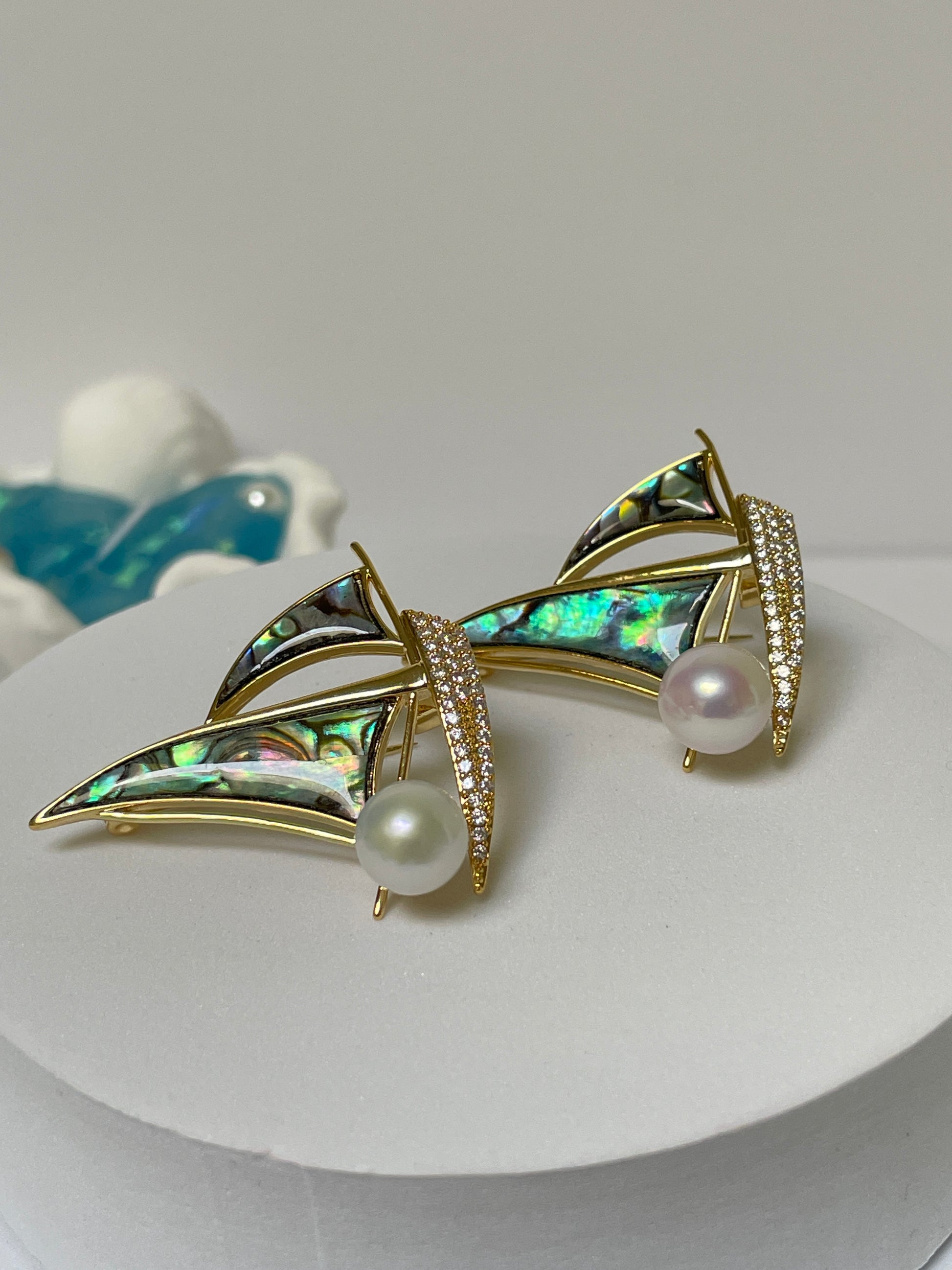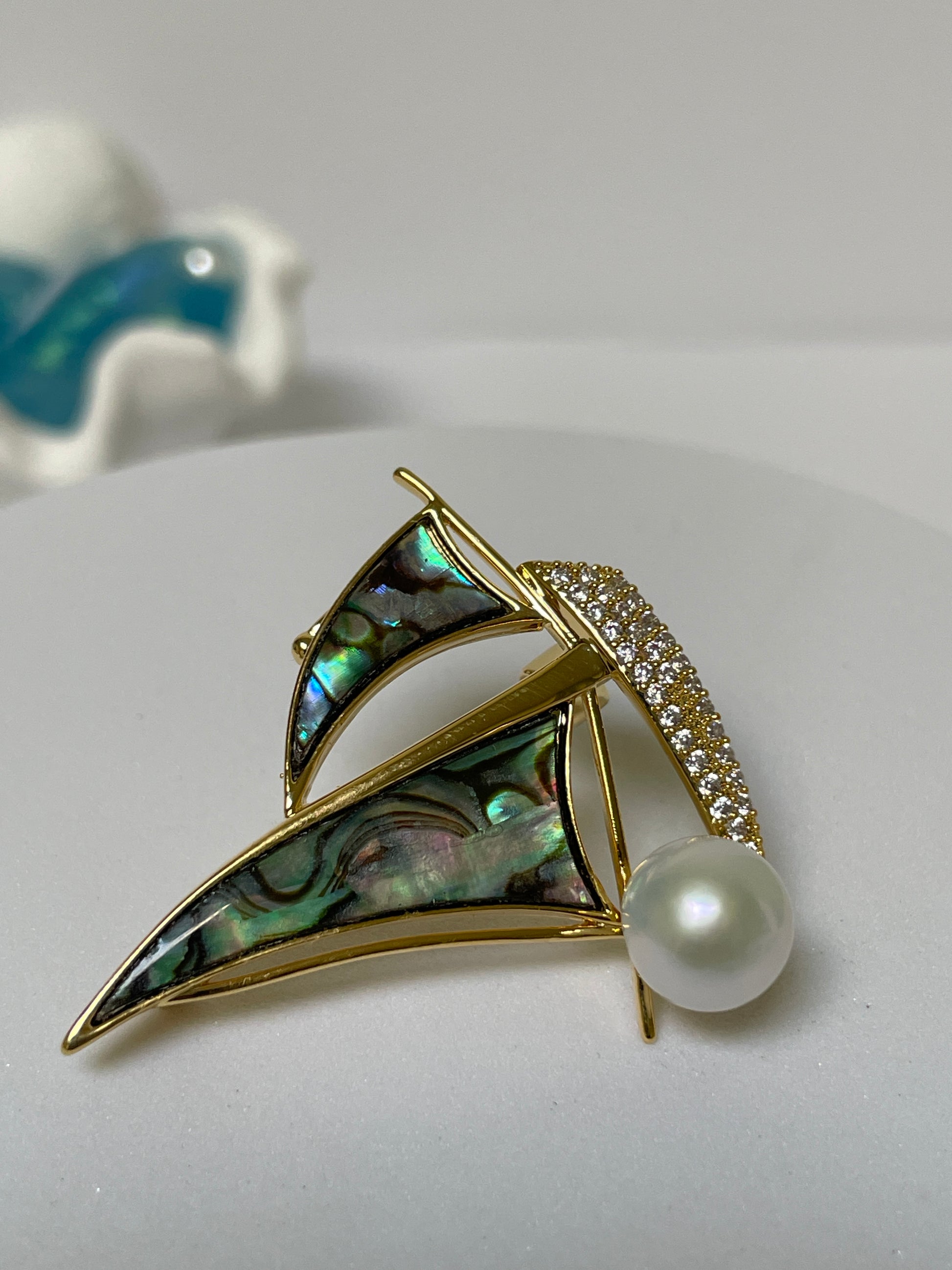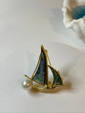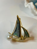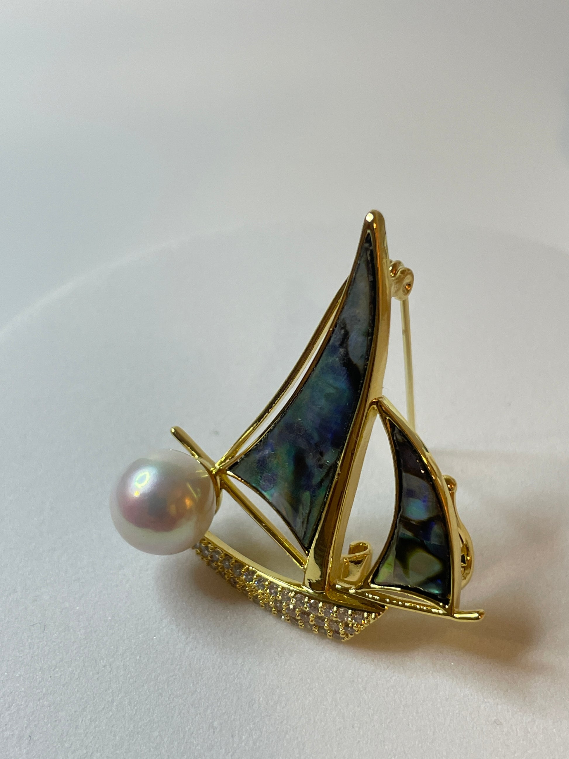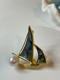 Sailboat Pearl Brooch | 8–10mm Freshwater Pearls · Mother-of-Pearl & Zircon Sails · Alloy Setting