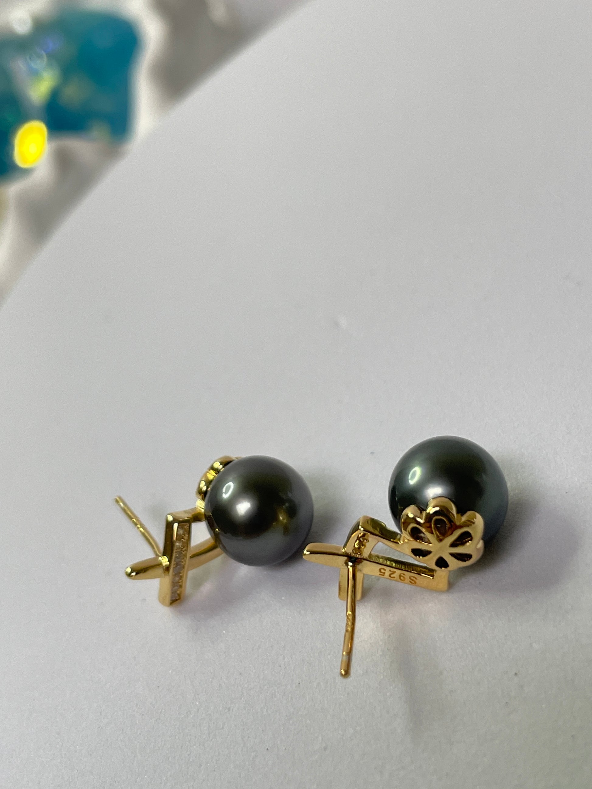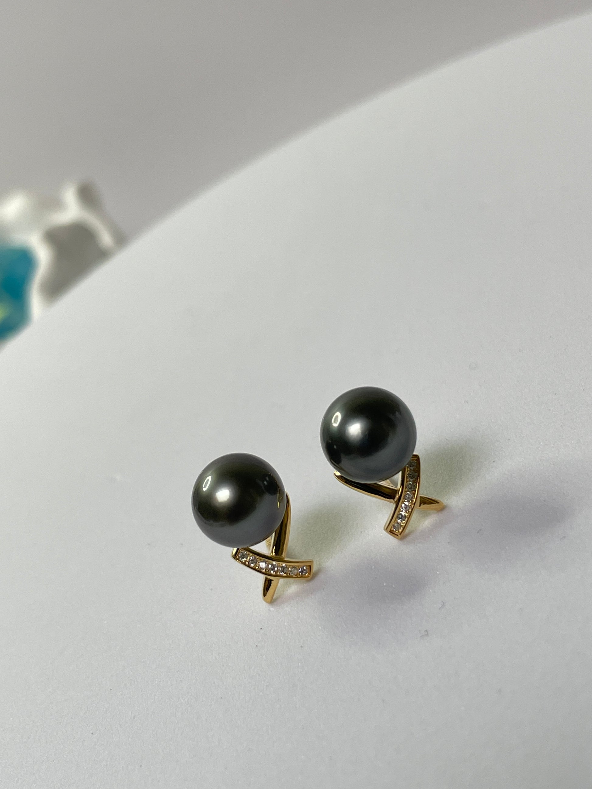 Perfect for formal events, evening styling, or adding a subtle touch of sophistication to daily wear, these Tahitian pearl earrings bring together timeless beauty and modern artistry in a striking way.