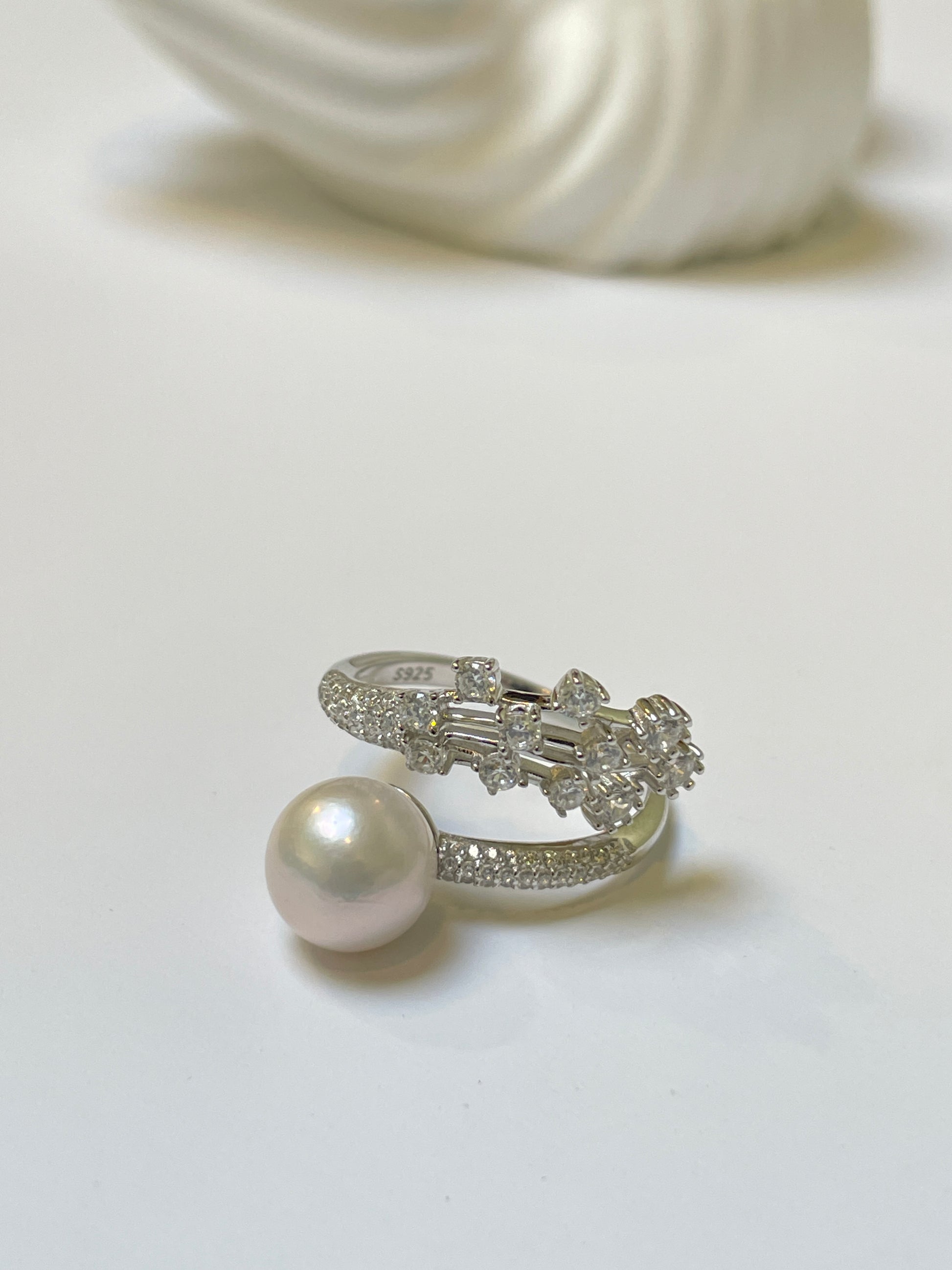 Edison Pearl Open Ring | 9–10mm Natural Pearl · S925 Silver · Adjustable Band