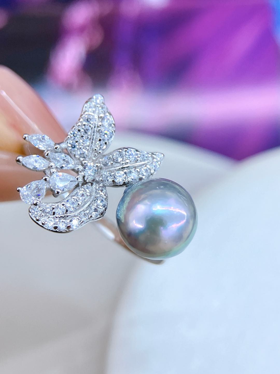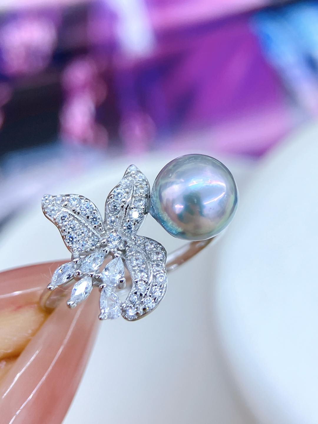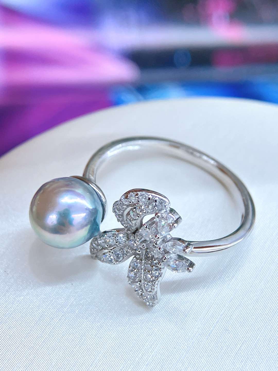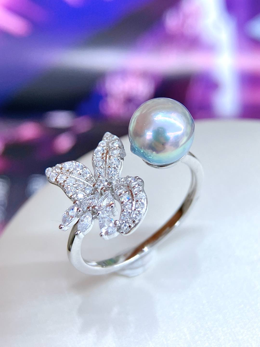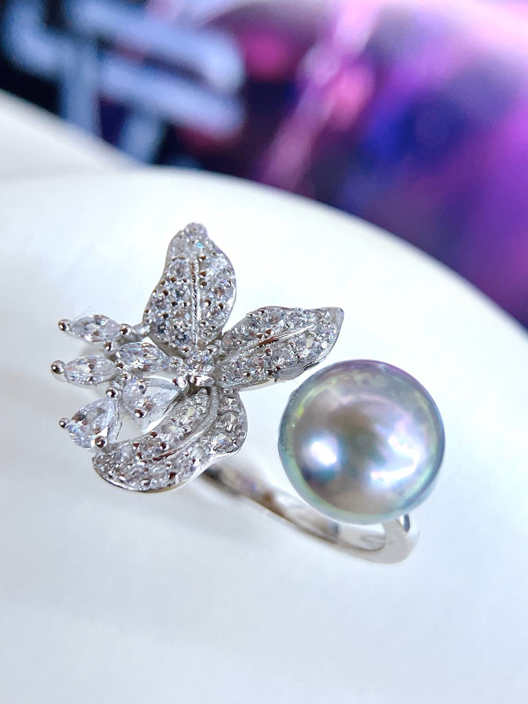 Set in S925 sterling silver and accented with sparkling zircons, the design brings a refined brilliance that enhances the pearl’s elegant glow. The ring band is fully adjustable, allowing for a comfortable and flexible fit.