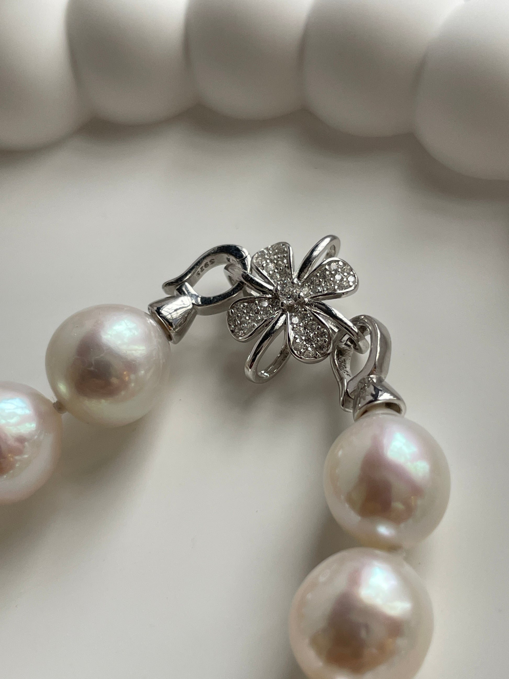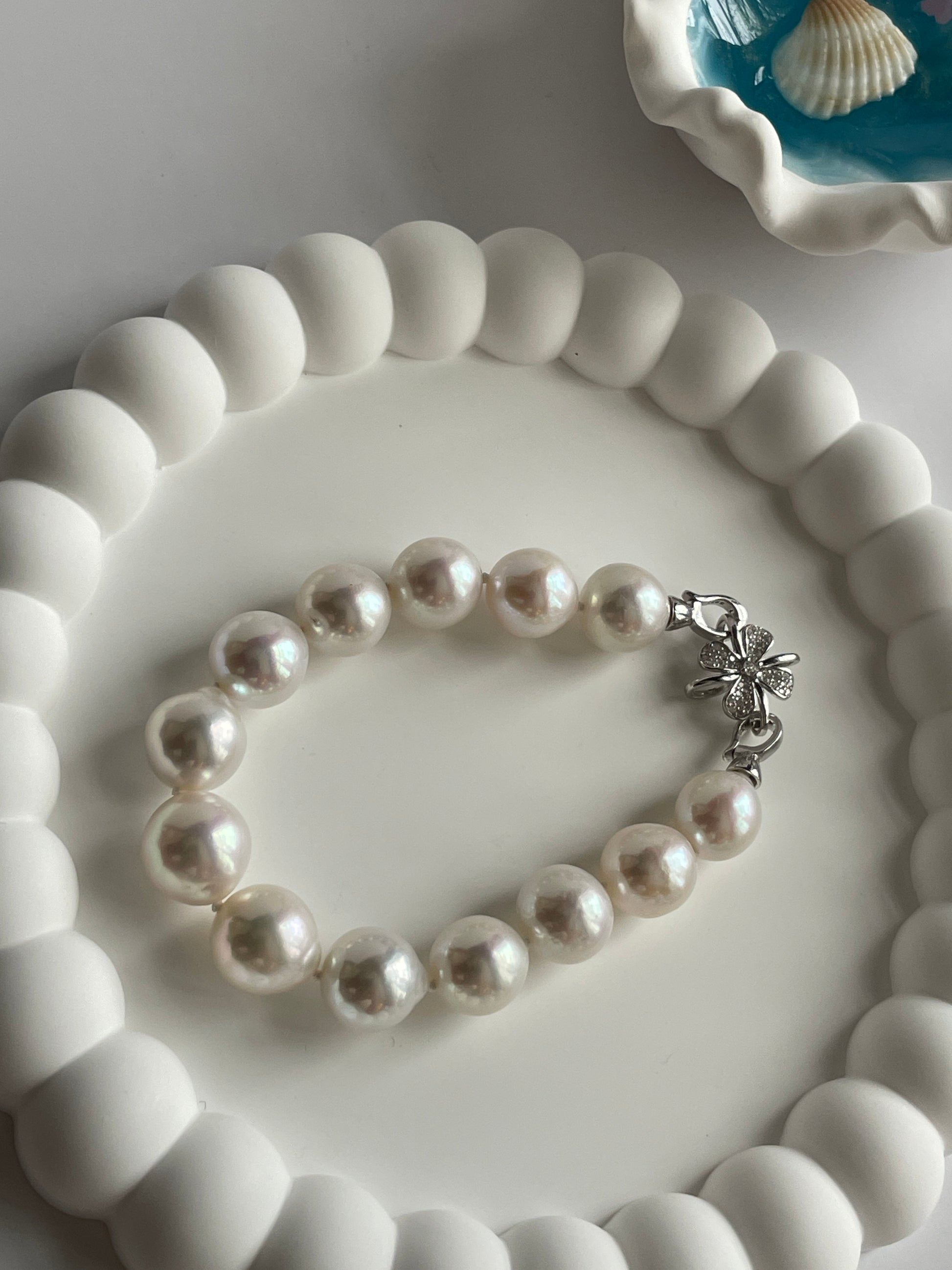 Freshwater Pearl Bracelet | 10–12mm · Bright White · Near-Flawless · Flower-Shaped Silver Clasp · 18.8cm Length