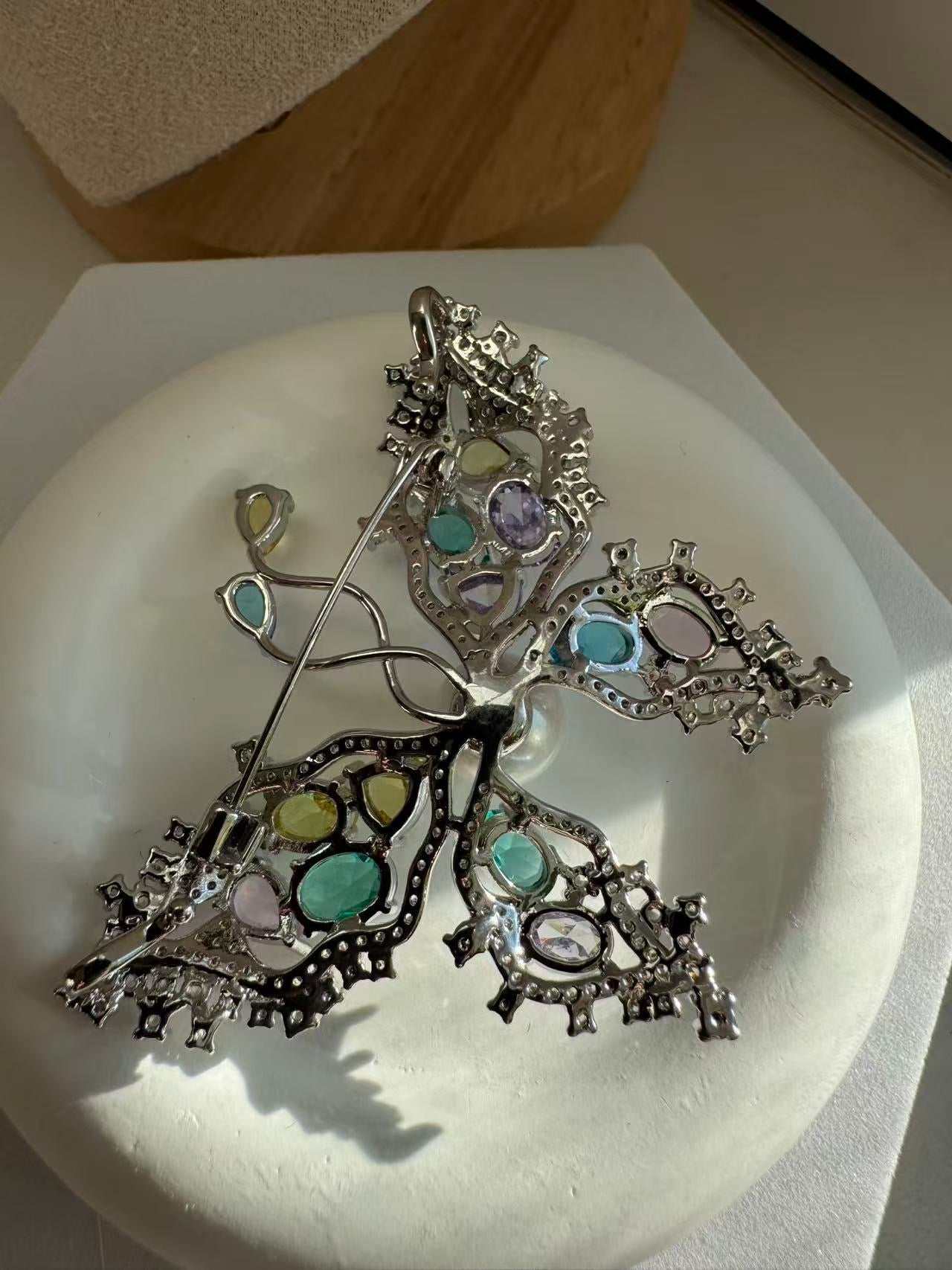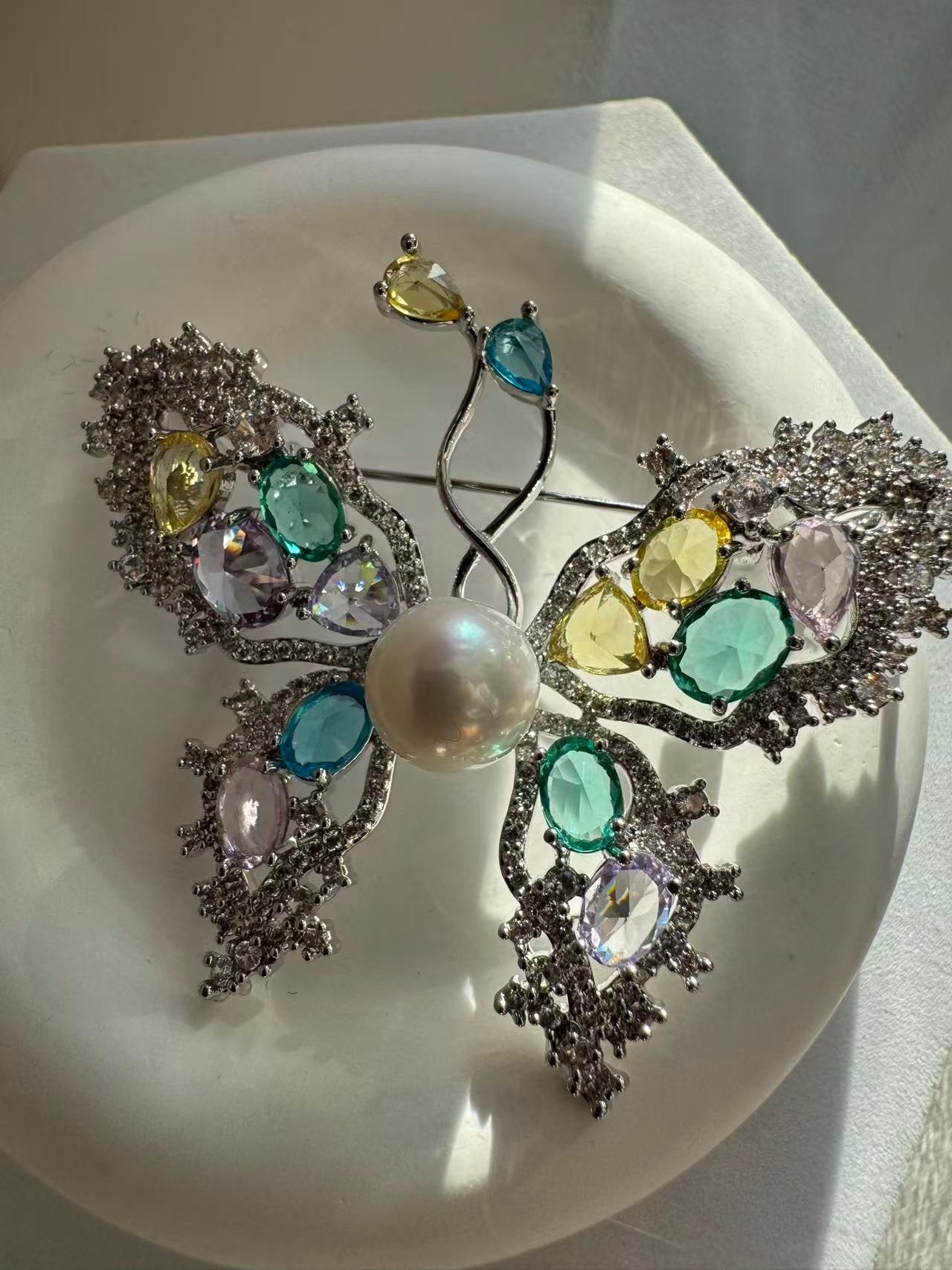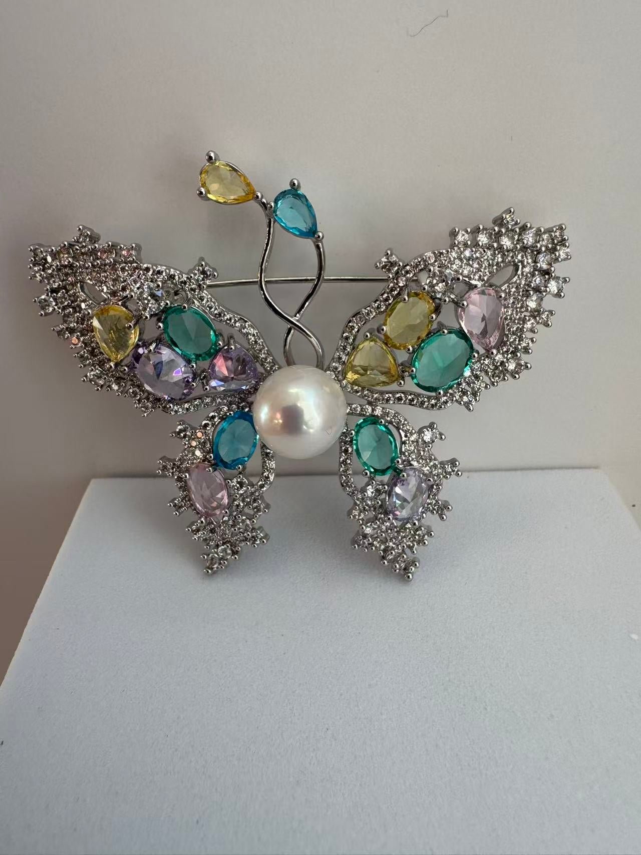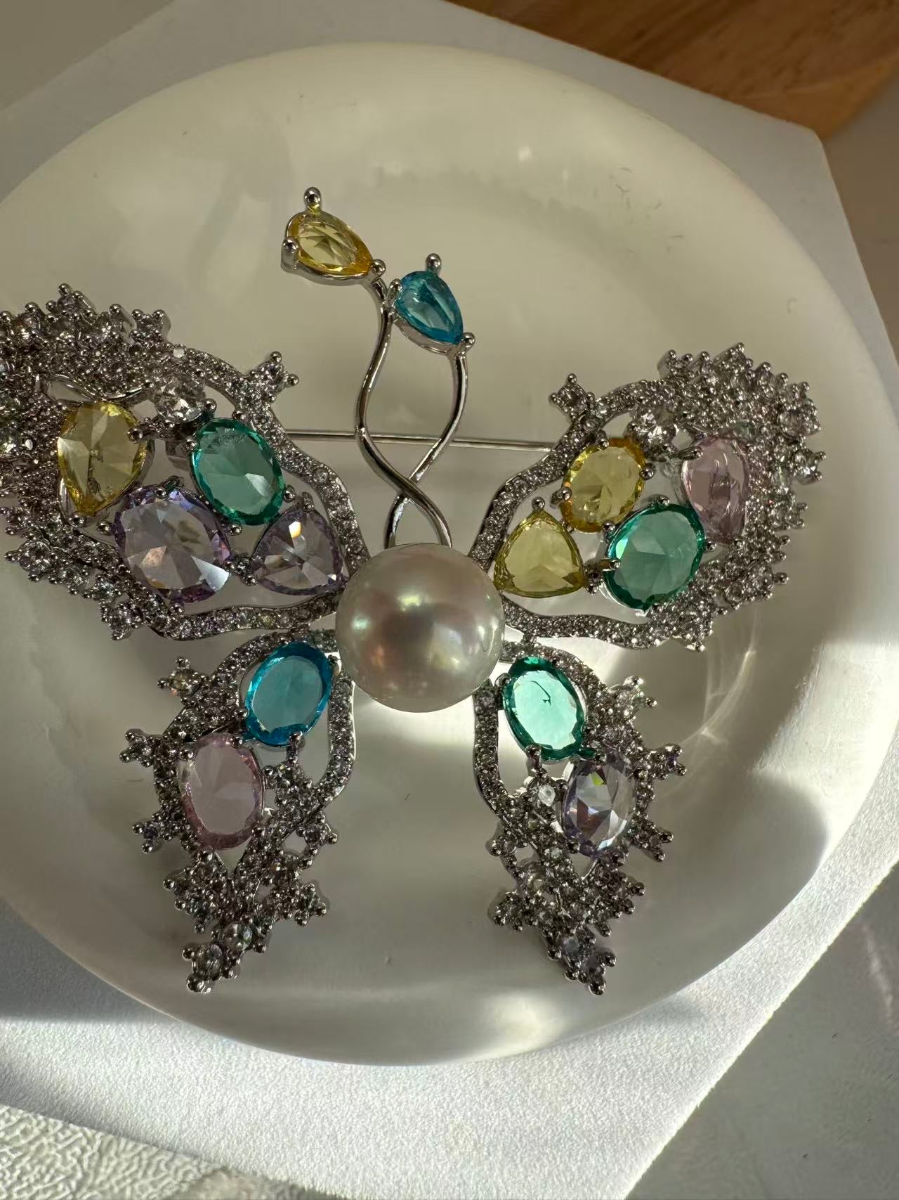 Sparkling zircon accents are meticulously set throughout the butterfly, enhancing the pearl’s natural glow and adding brilliance and depth. With an impressive overall size of approximately 4.5×6.1cm, this bold butterfly brooch delivers striking presence and exquisite craftsmanship.