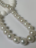 This bold freshwater pearl necklace features 33 near-round pearls in an impressive 11–14mm size range, offering a strong, elegant presence when worn. Each pearl displays natural surface characteristics that may include small imperfections, but these are not visible at social distance and do not affect the overall beauty of the piece.