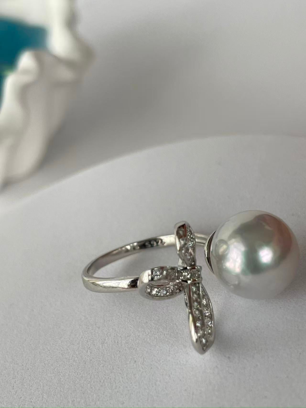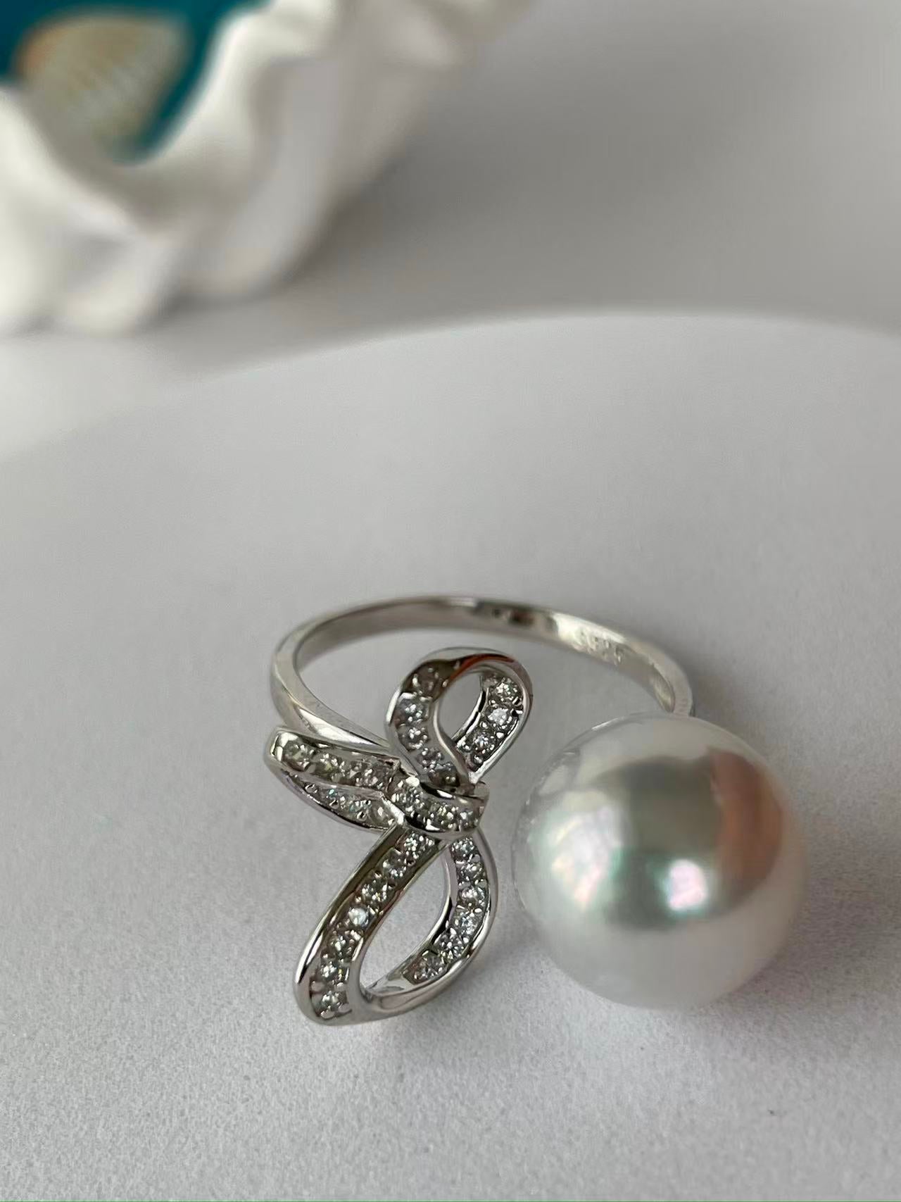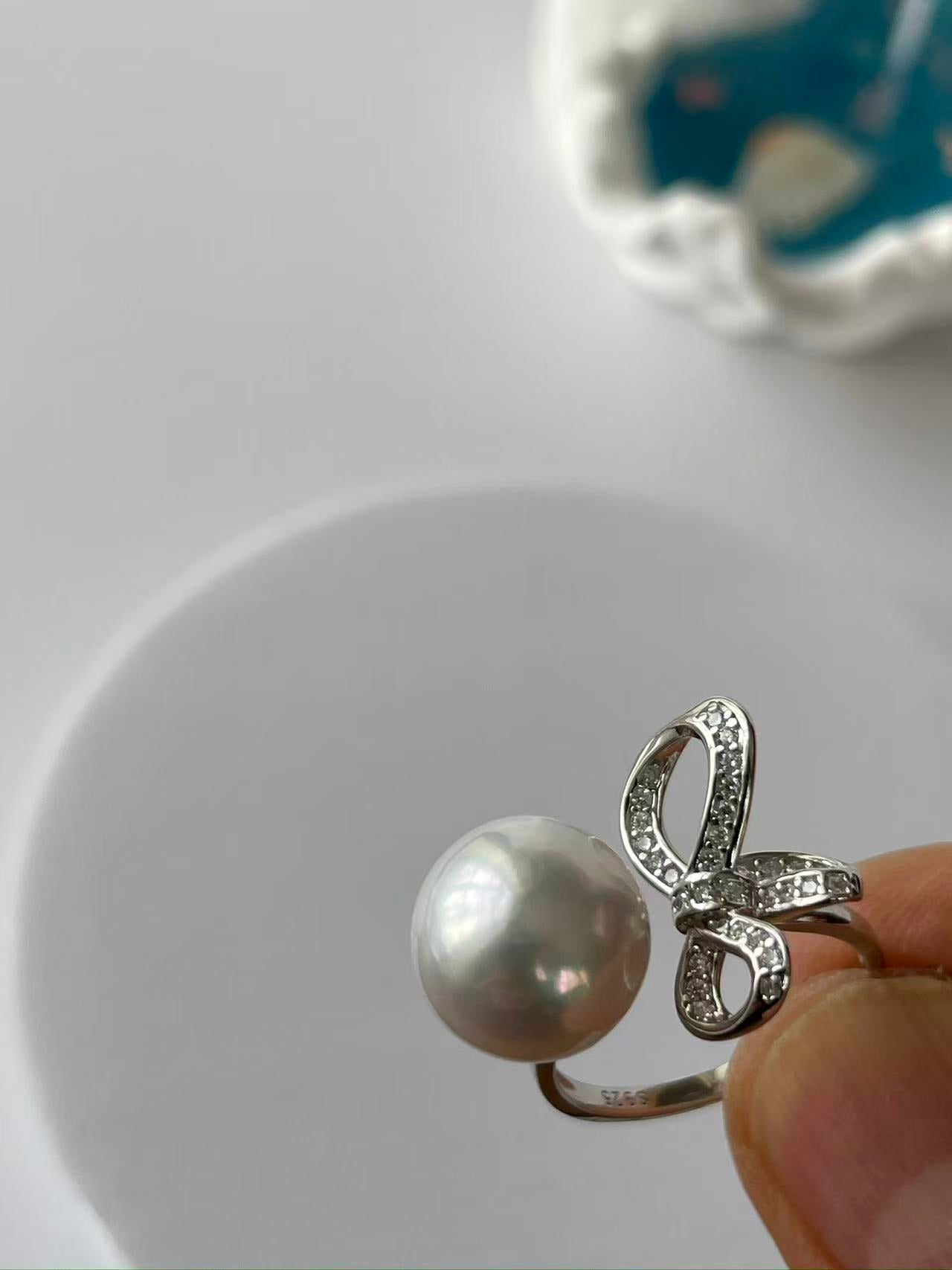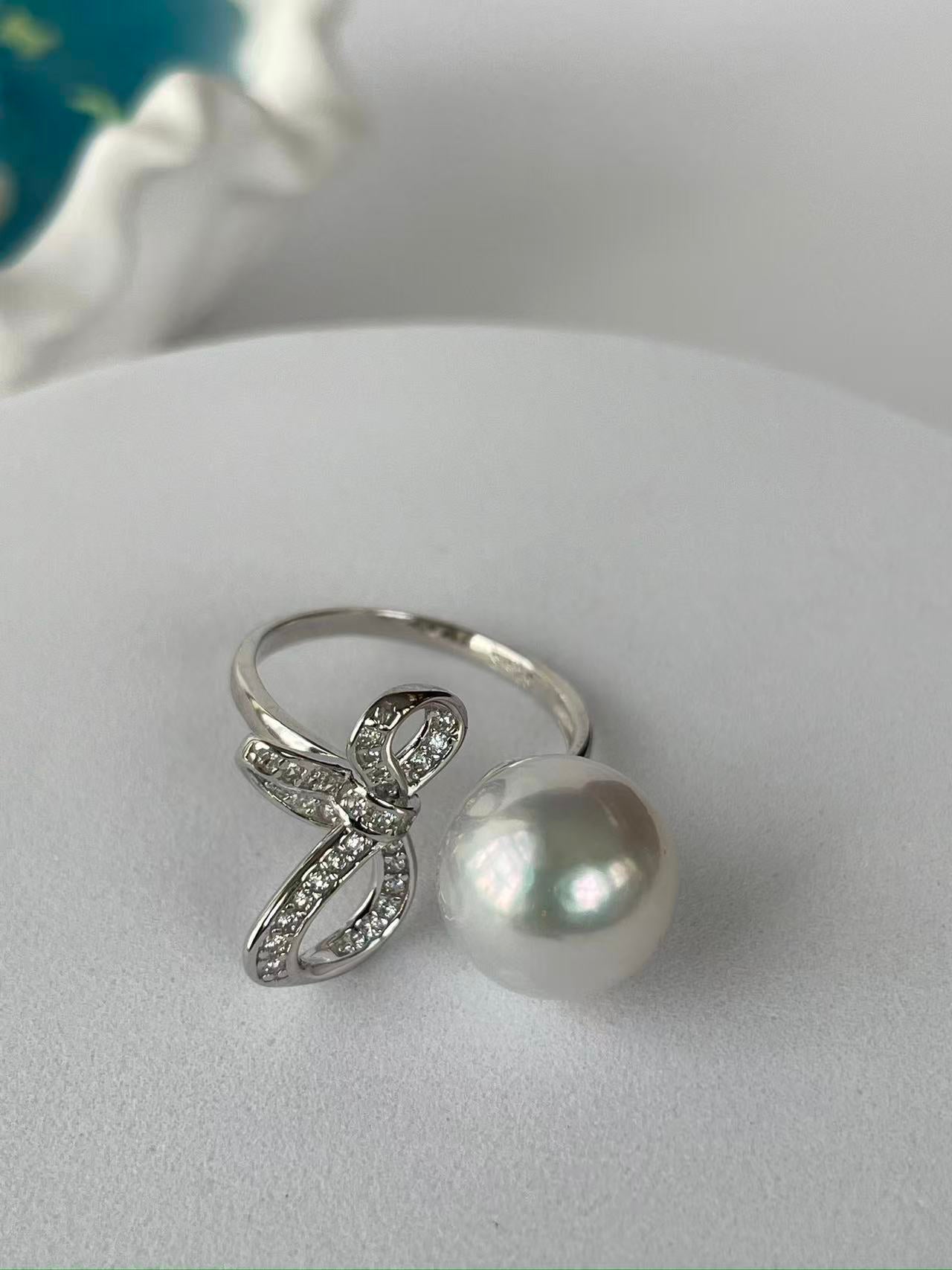 This elegant ring features an 11–12mm freshwater pearl with a beautifully round shape, smooth surface, and bright, refined luster. The pearl’s delicate glow and clean, radiant finish highlight its exceptional quality.