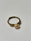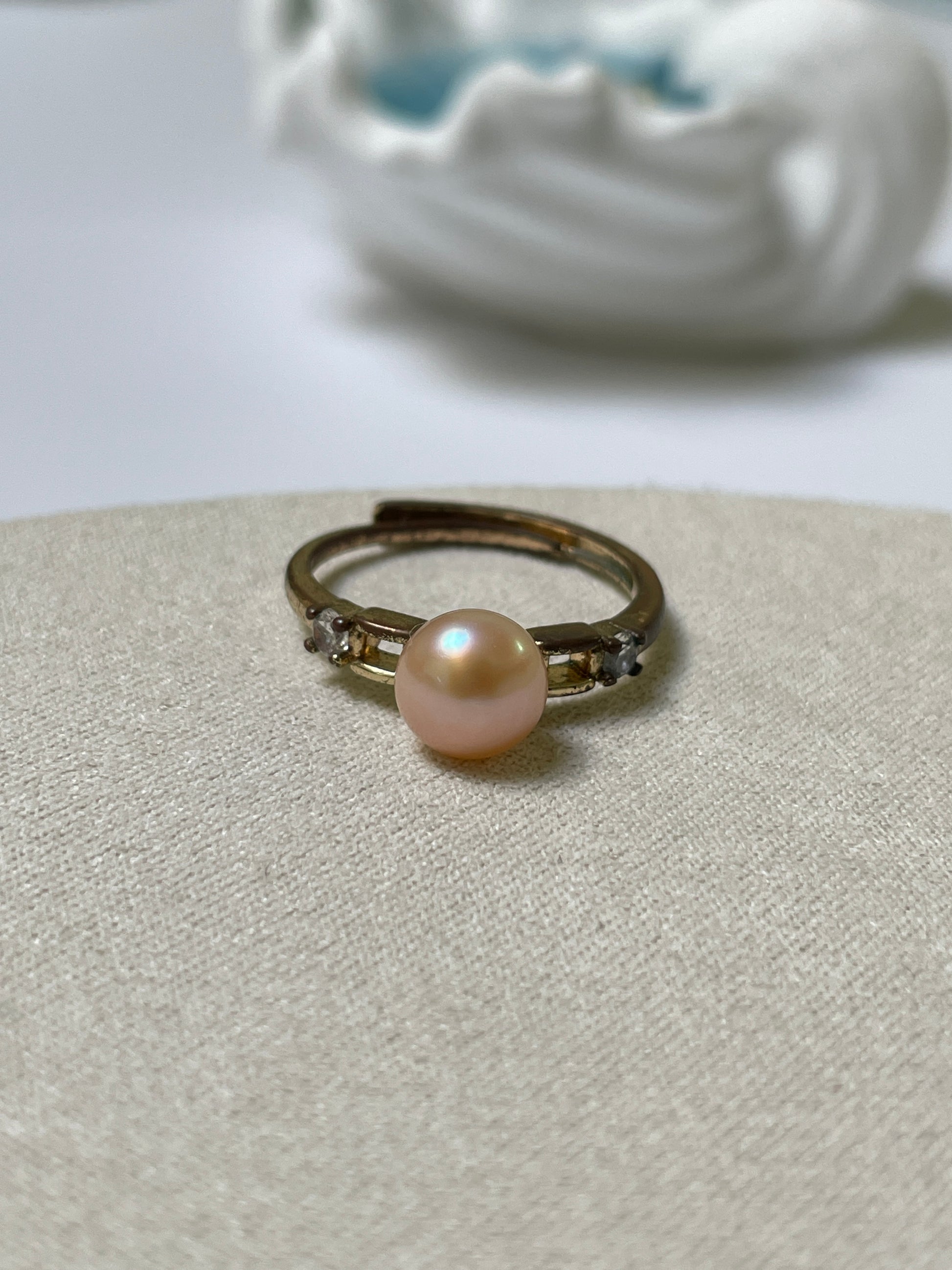 This elegant ring features a natural freshwater pearl measuring 8–9mm in diameter, with a soft pink hue and a smooth, lustrous surface. The pearl’s subtle glow adds a touch of grace and femininity to the design.