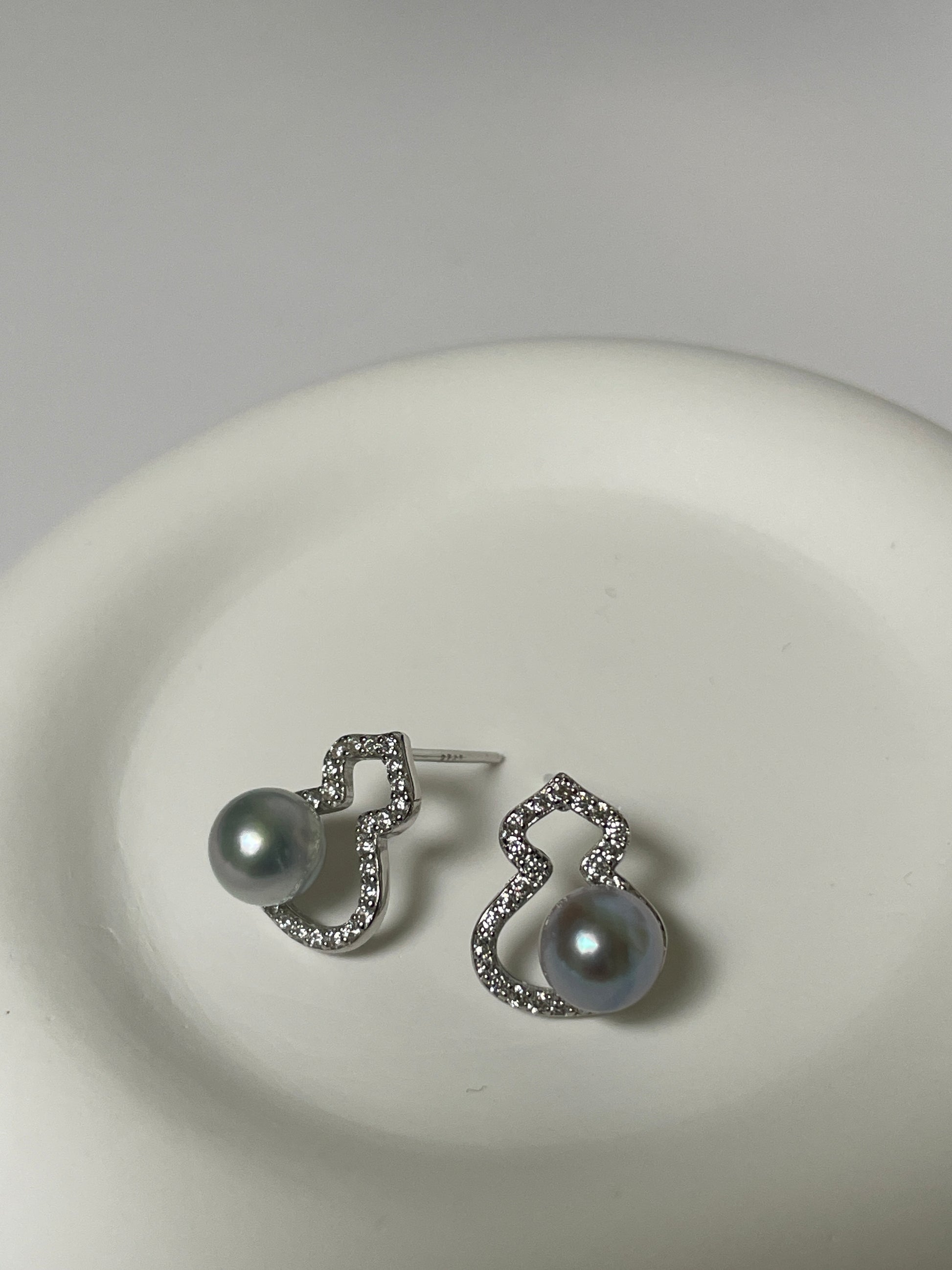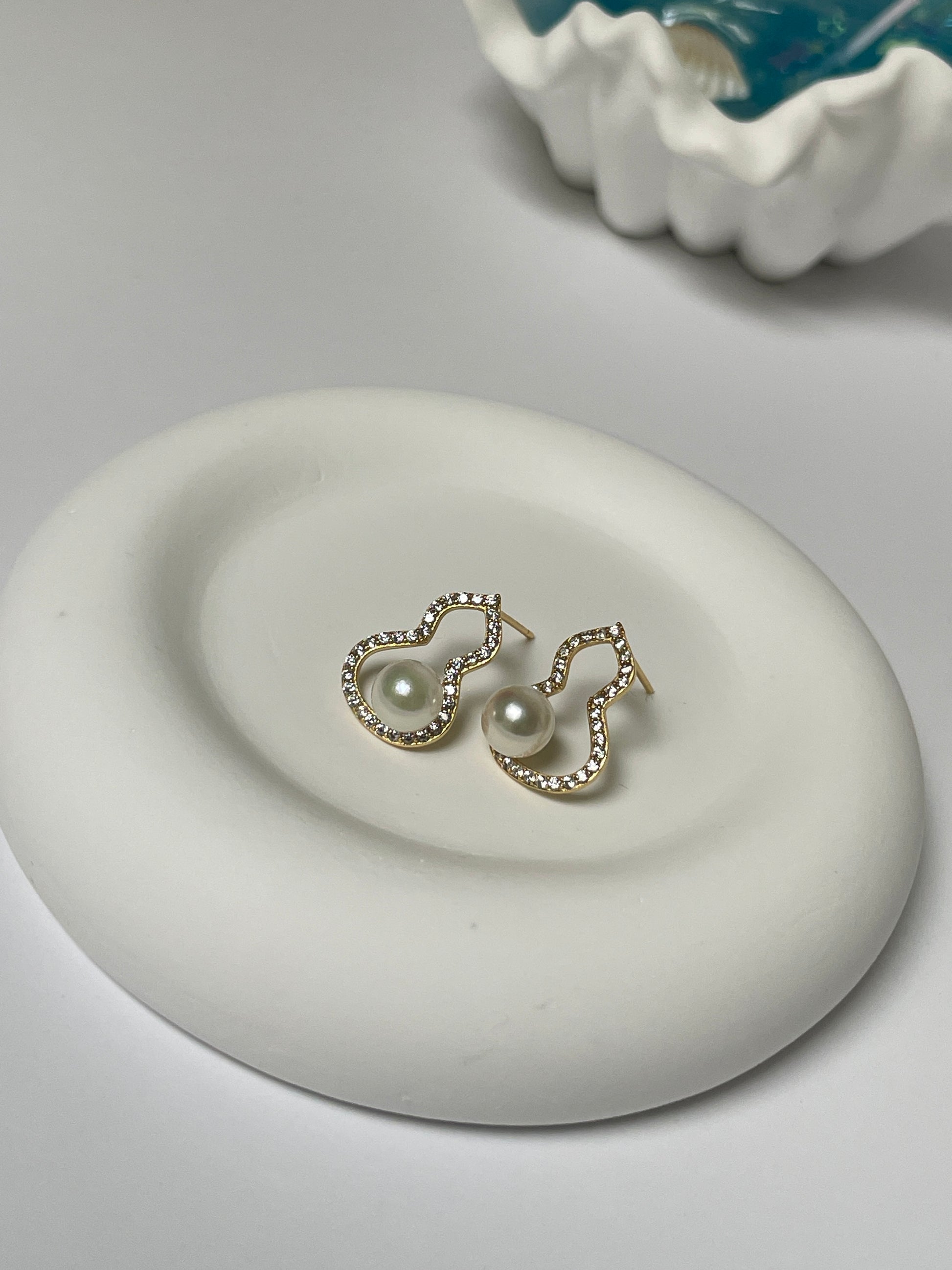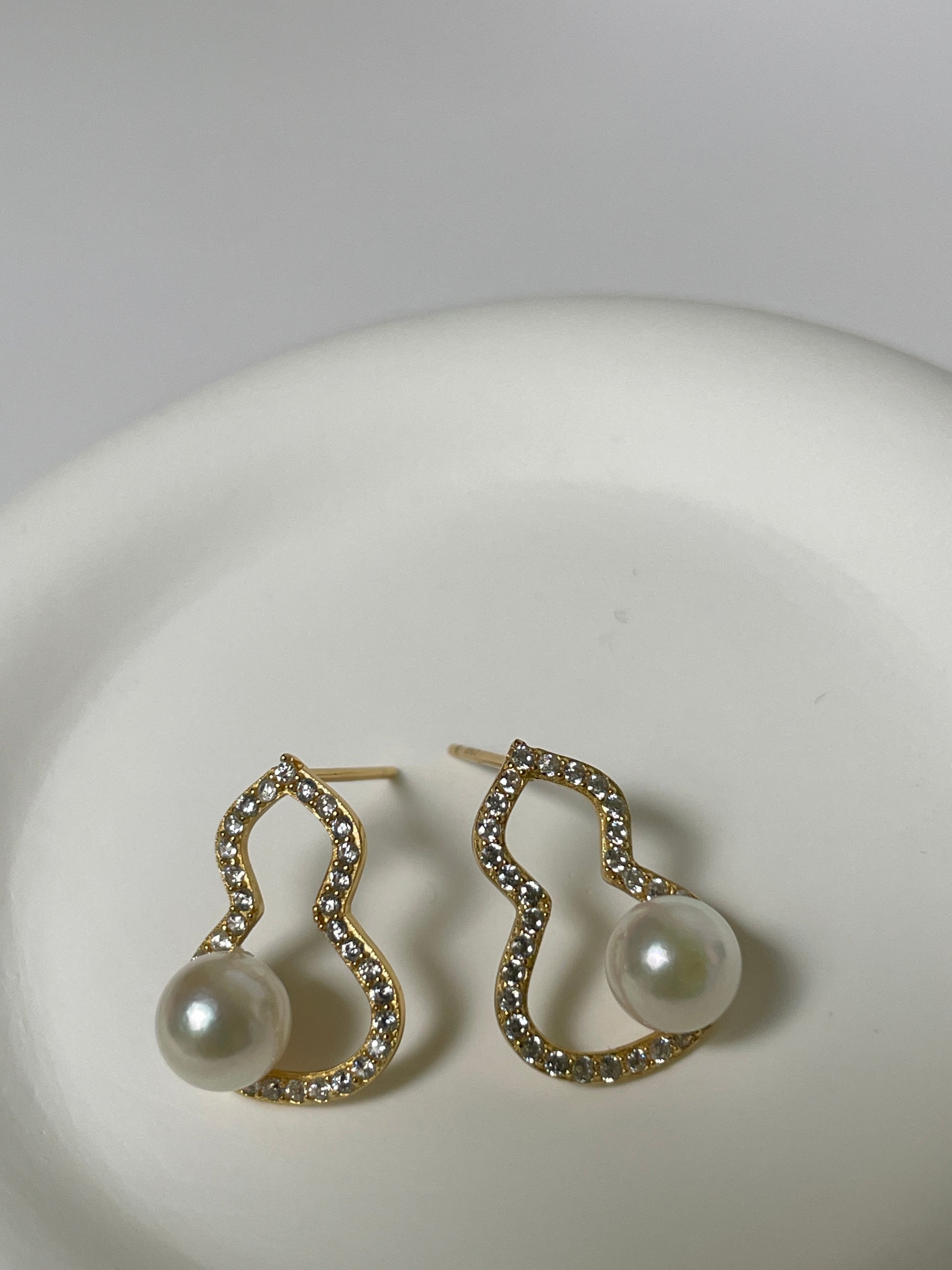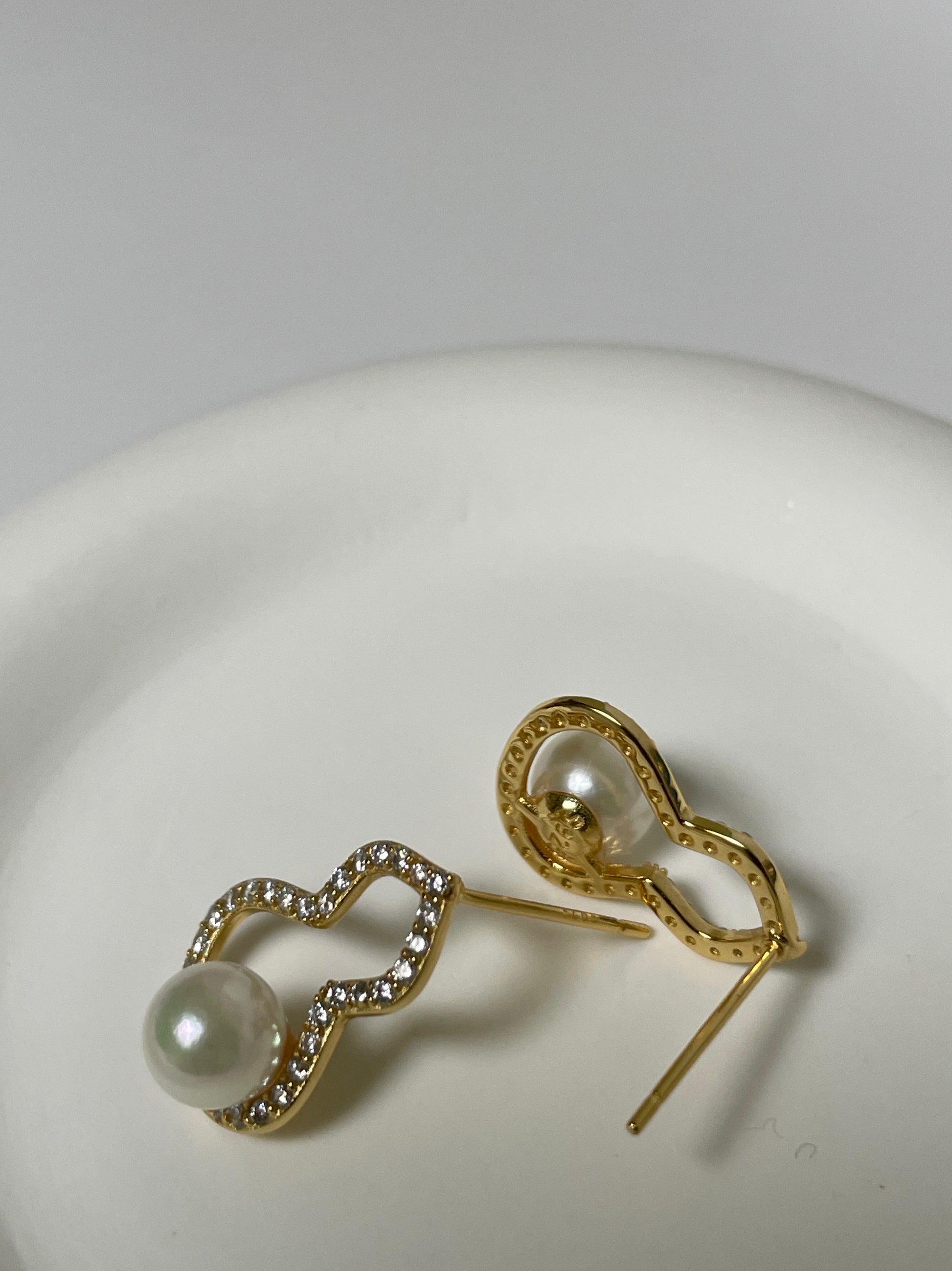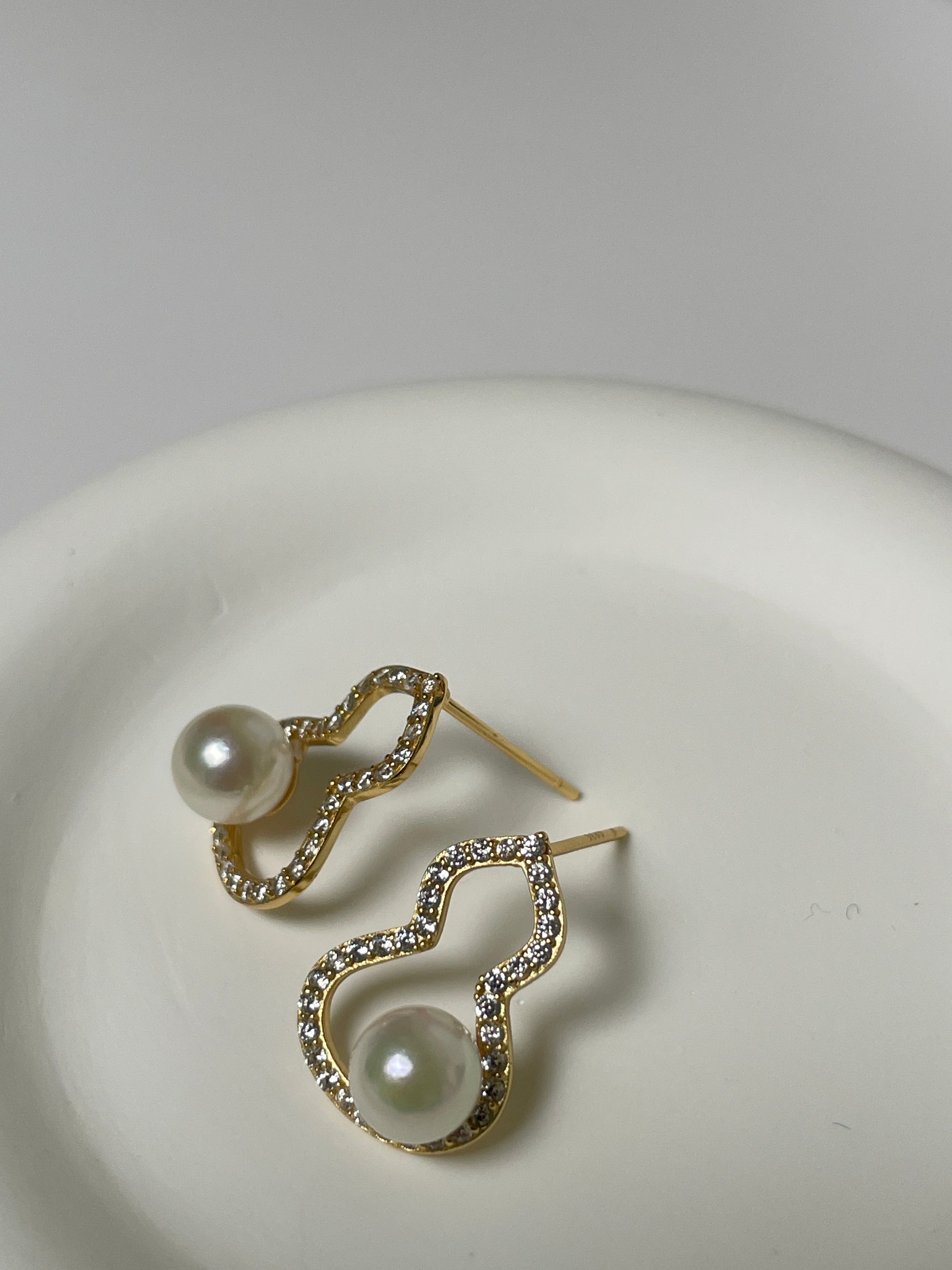 These delicate earrings feature 5–6mm Japanese Akoya pearls set in a gourd-inspired silhouette, crafted with S925 sterling silver for a clean, minimalist finish.