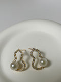 Gourd-Inspired Akoya Pearl Stud Earrings | 5–6mm Japanese Pearls · S925 Sterling Silver · Soft & Minimal
