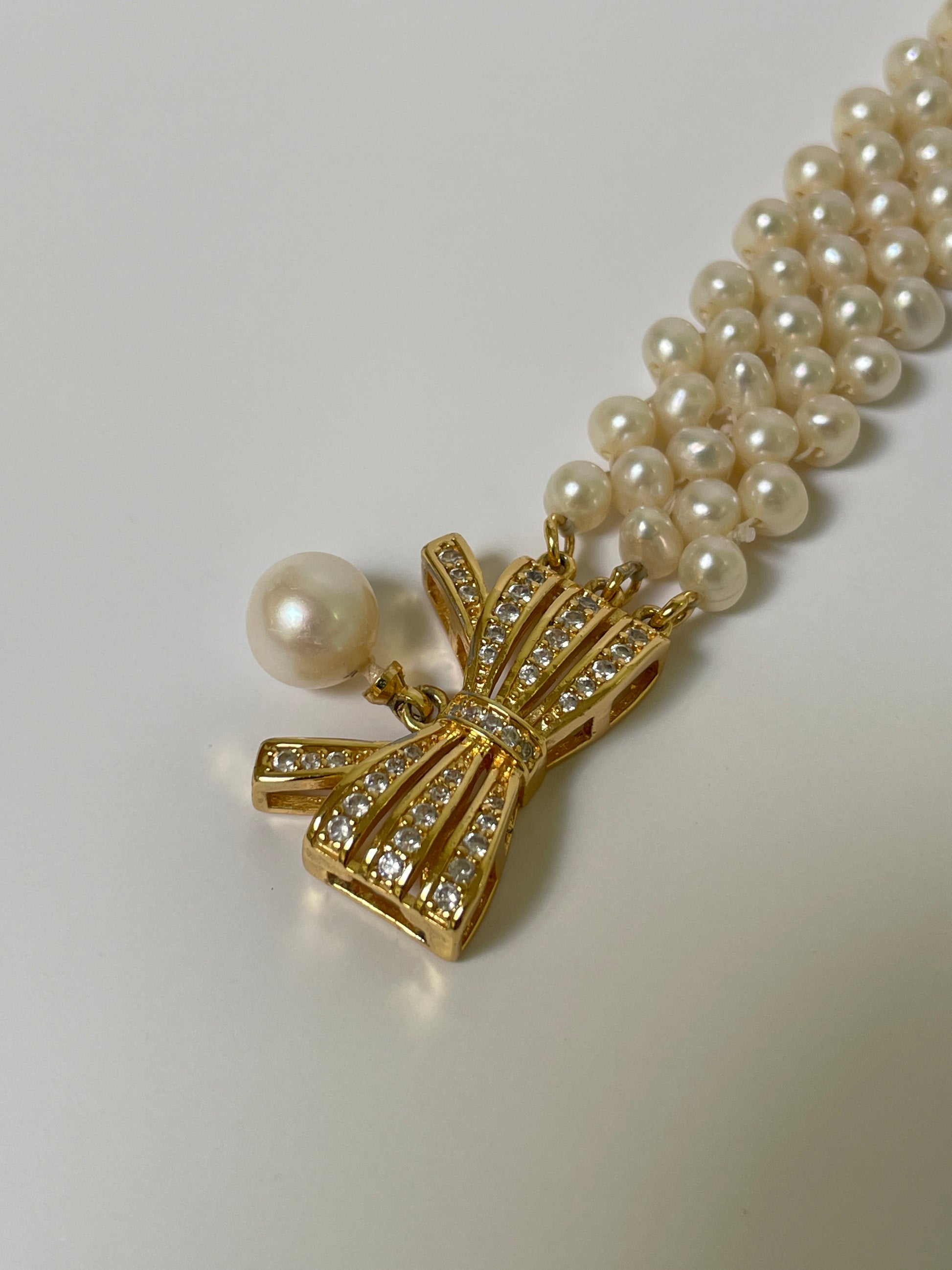 Layered Freshwater Pearl Bracelet with Bow Clasp | 3–4mm & 7–8mm Pearls · Handmade Elegance