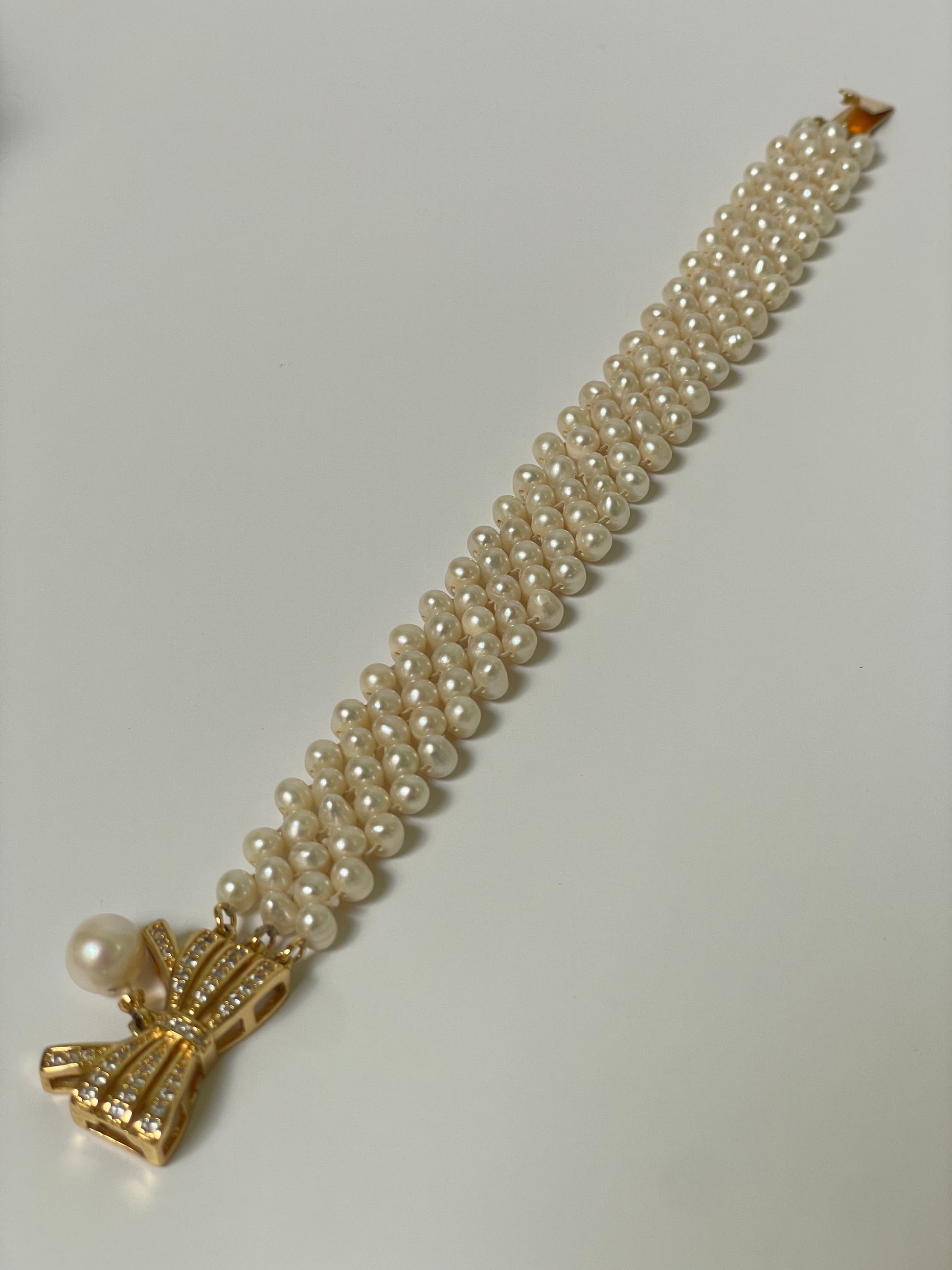 A graceful and refined freshwater pearl bracelet, handmade with layered beauty.
