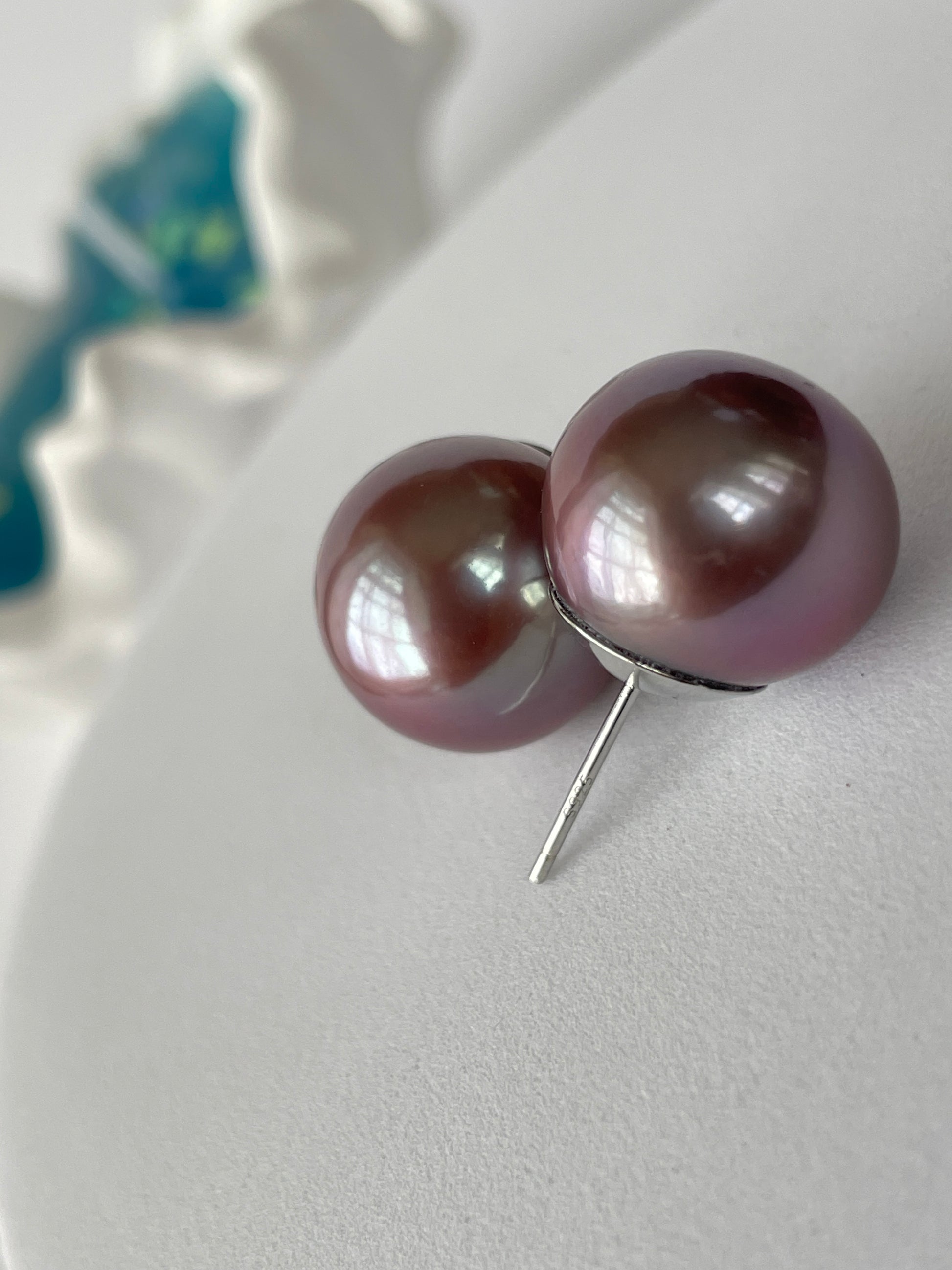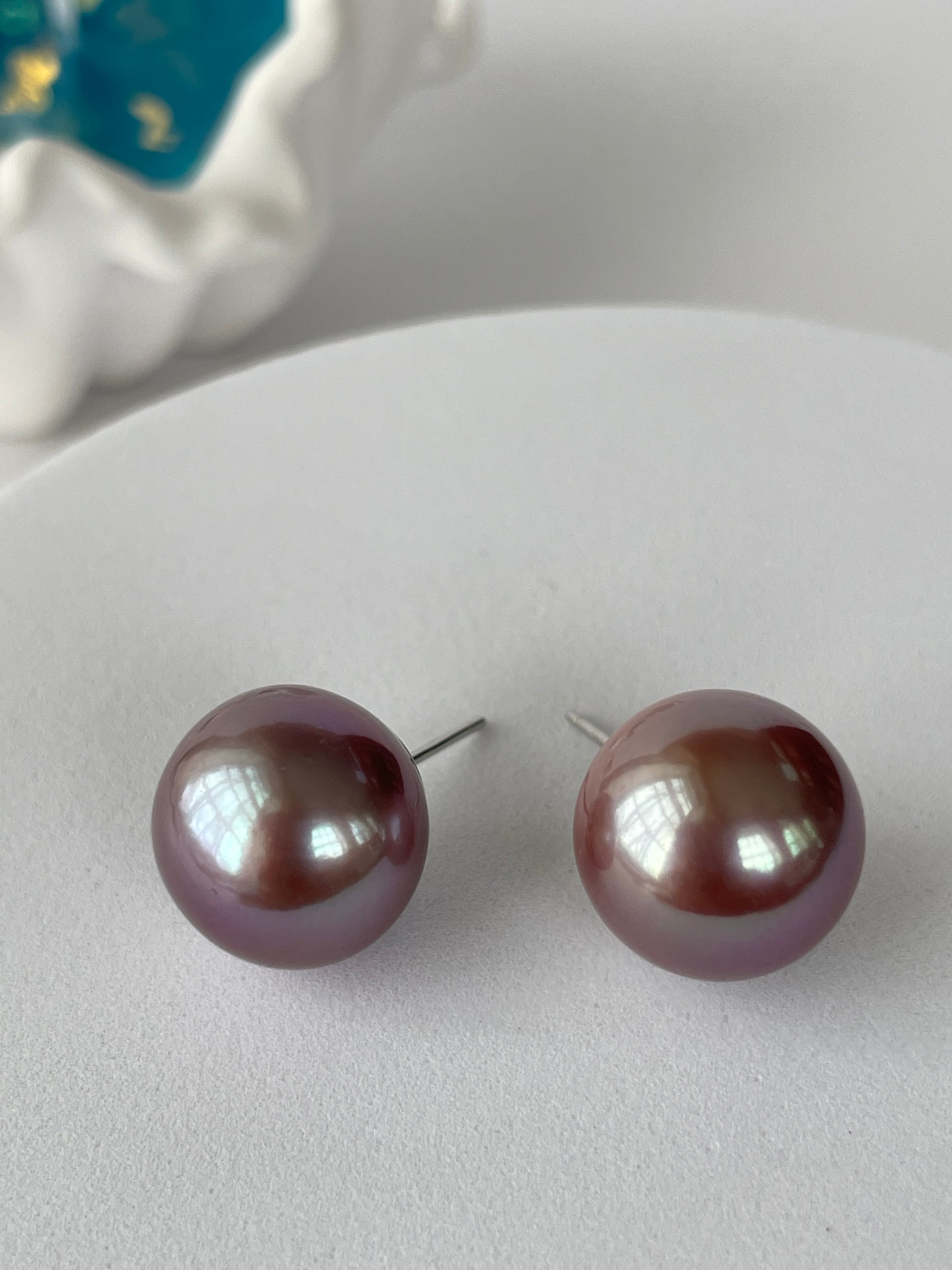 Purple Freshwater Pearl Stud Earrings | 14–15mm · Rare Oversize · Round · Soft Iridescence · S925 Sterling Silver