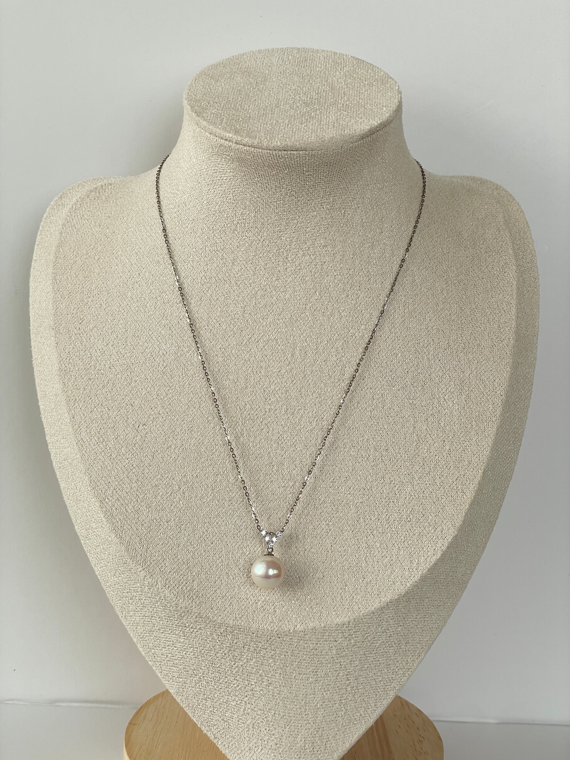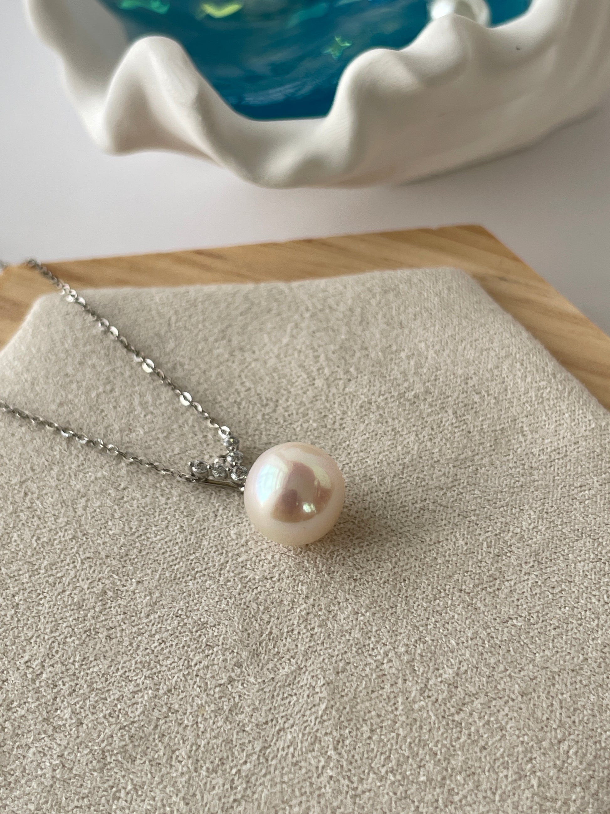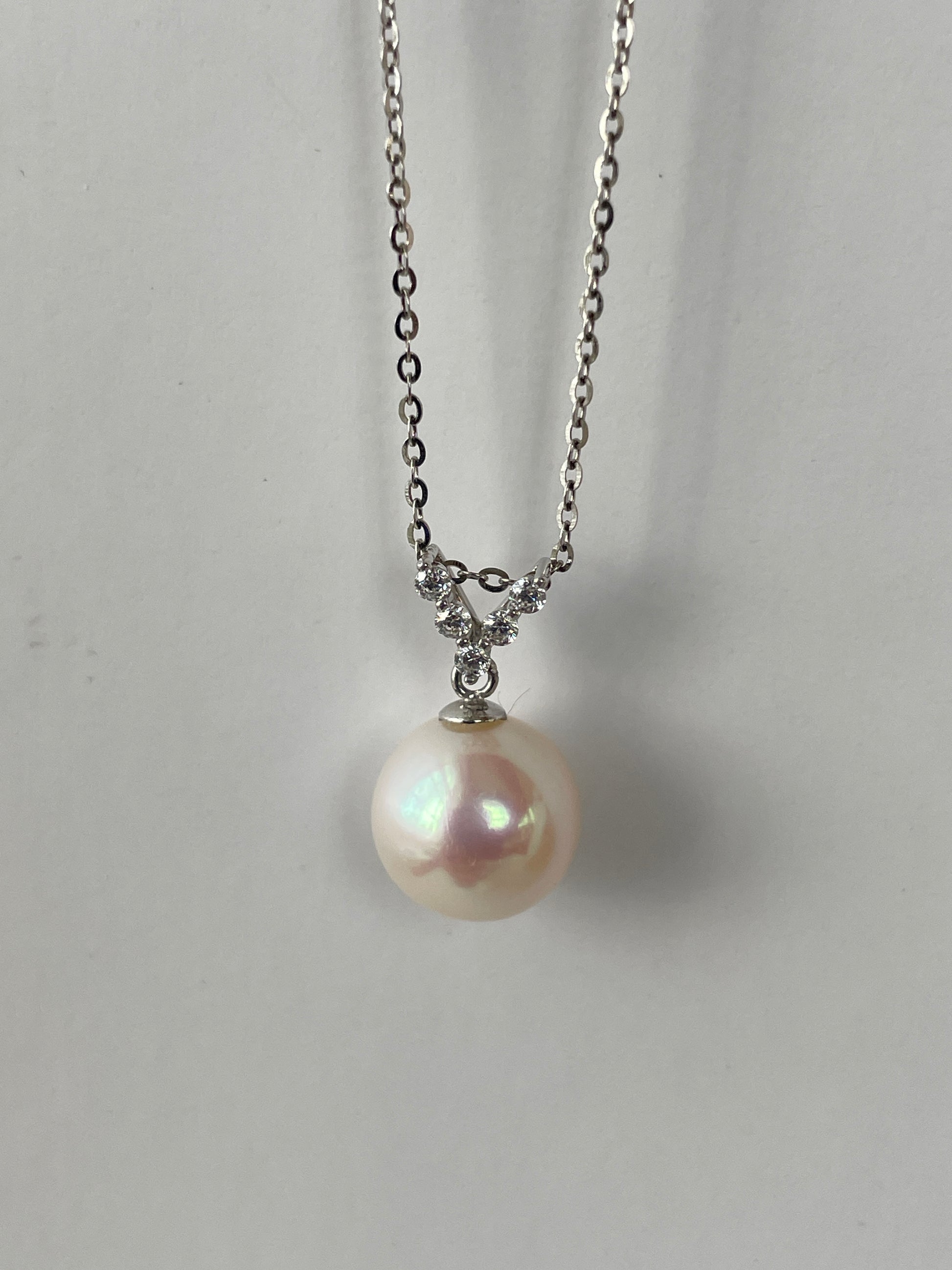 Saltwater Pearl Pendant | 9–10mm · Round · White with Pink Overtone · High Luster · V-Shaped Zircon Bail (S925 Chain Included)